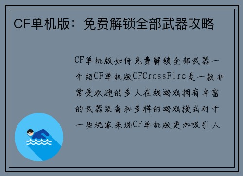 CF单机版:免费解锁全部武器攻略